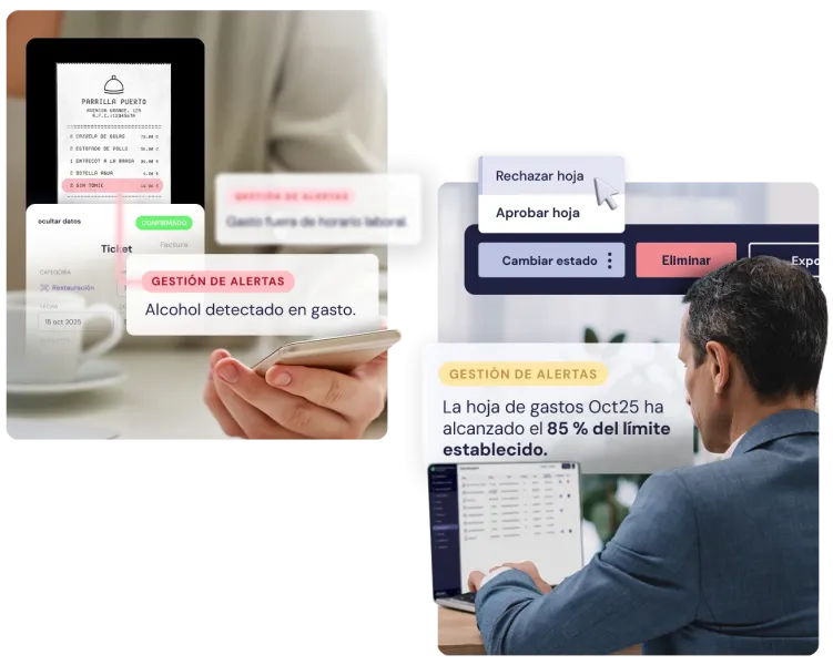 La aplicación brinda una herramienta ágil y sencilla para optimizar y cubrir todo el proceso de gestión de notas de gastos de viaje profesionales, desde el momento en que se efectúa el gasto, hasta los procesos de validación, control y tramitación contable.